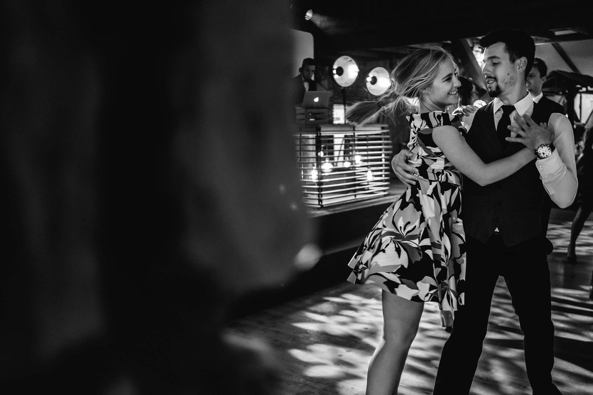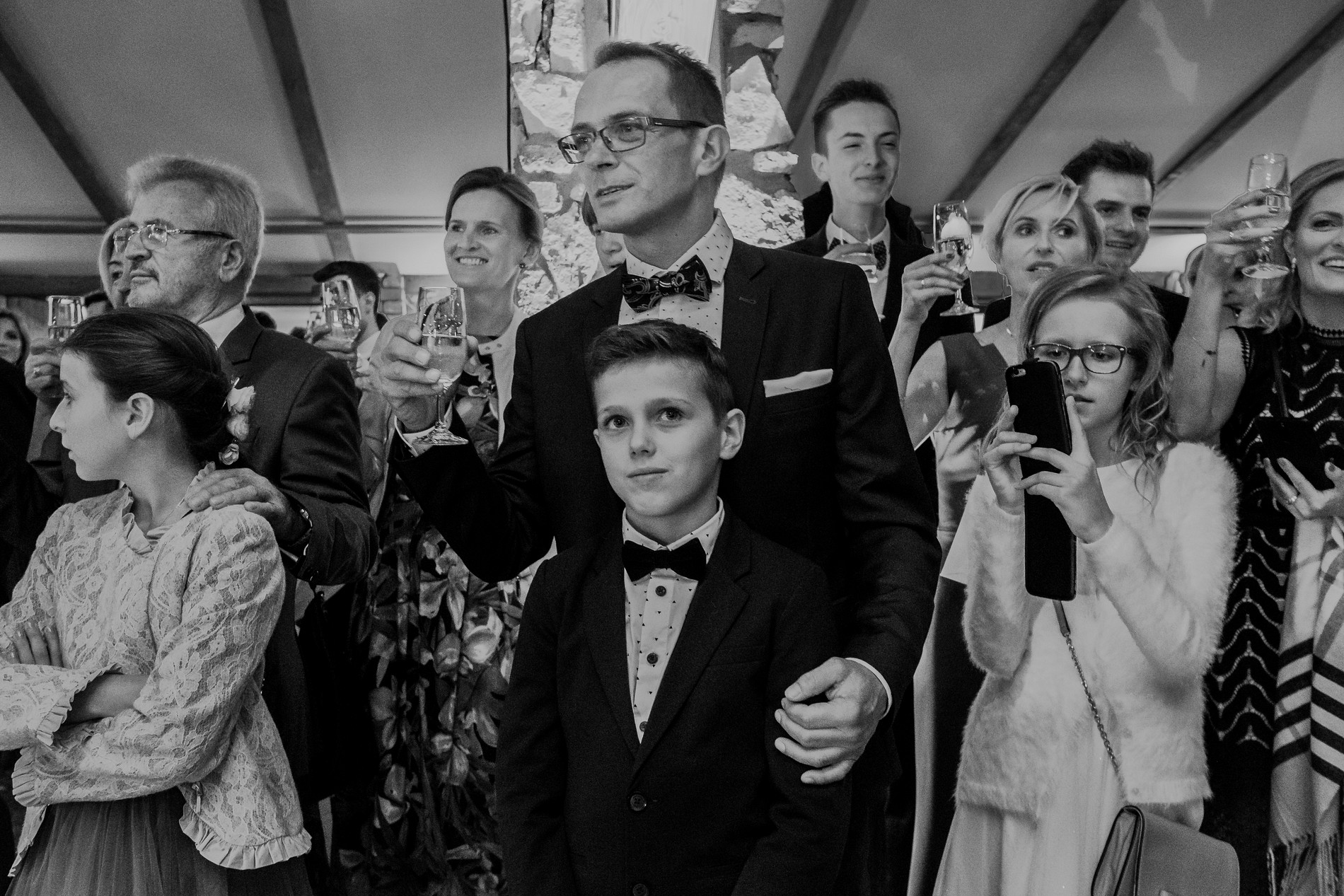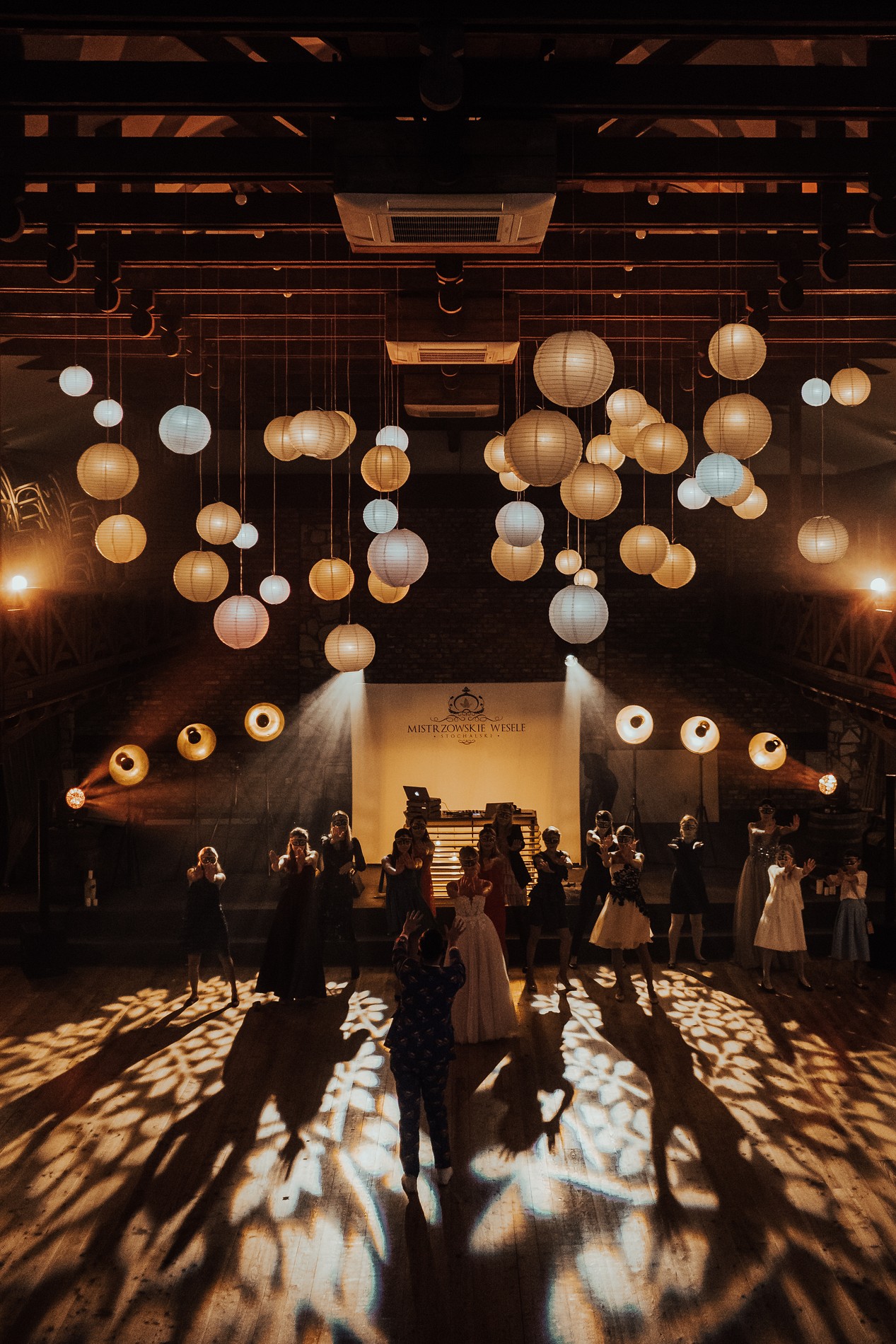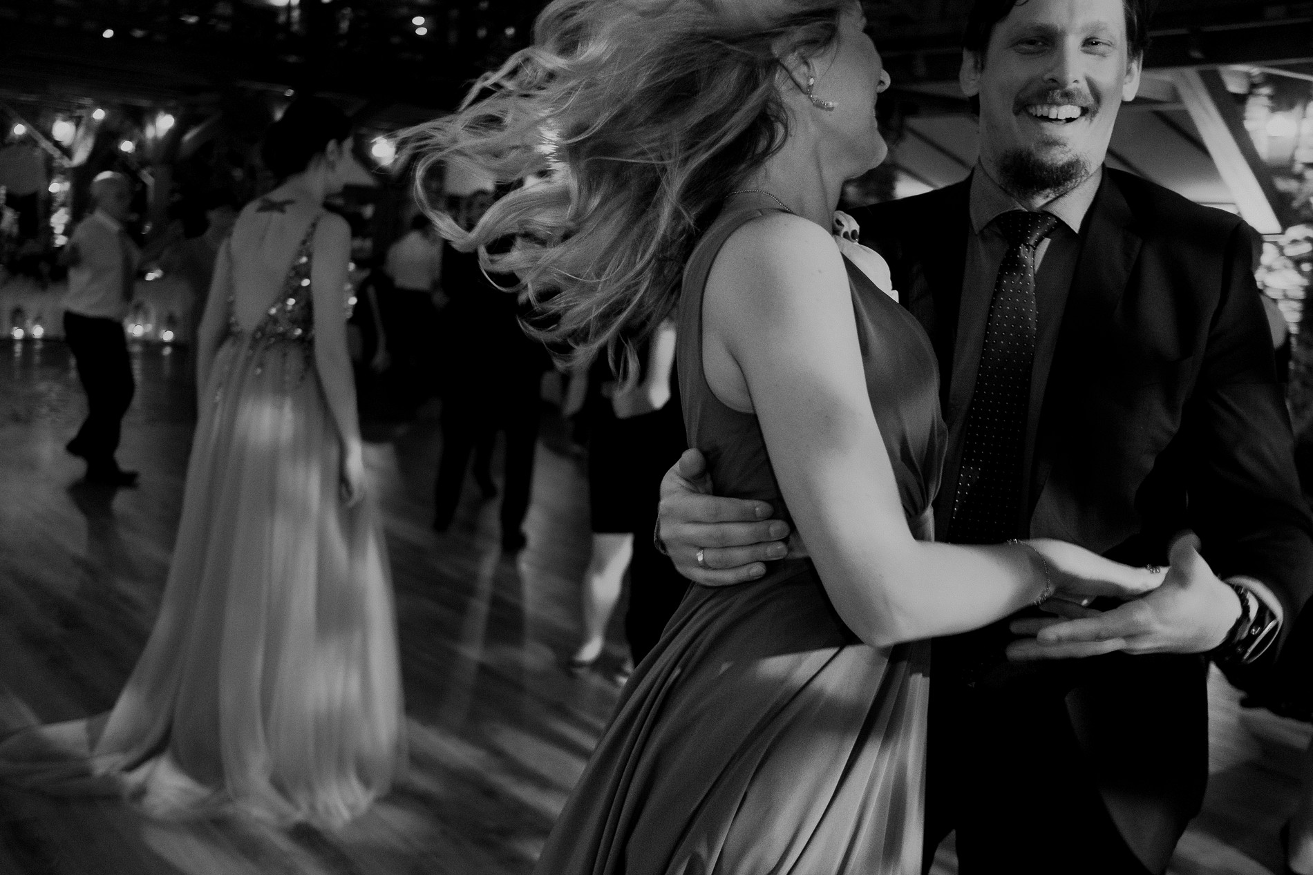 Po złożeniu przysięgi, nadszedł czas na świętowanie z bliskimi. Para Młoda zaprosiła Gości do Dworzyszcza Woli. Wnętrza w rustykalnym stylu, oświetlone świecami, wprowadzały ciepłą, rodzinną atmosferę, a jednocześnie zachwycały swoją subtelną elegancją. Para Młoda dała poznać się bliżej prezentując swoją historię w polaroidach rozwieszonych przy wejściu na salę weselną. Bajkową nutę wprowadził pierwszy taniec w chmurach.