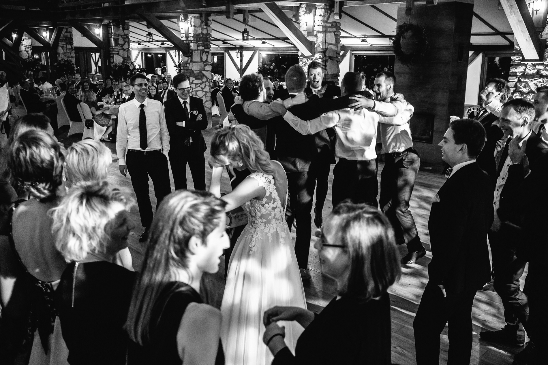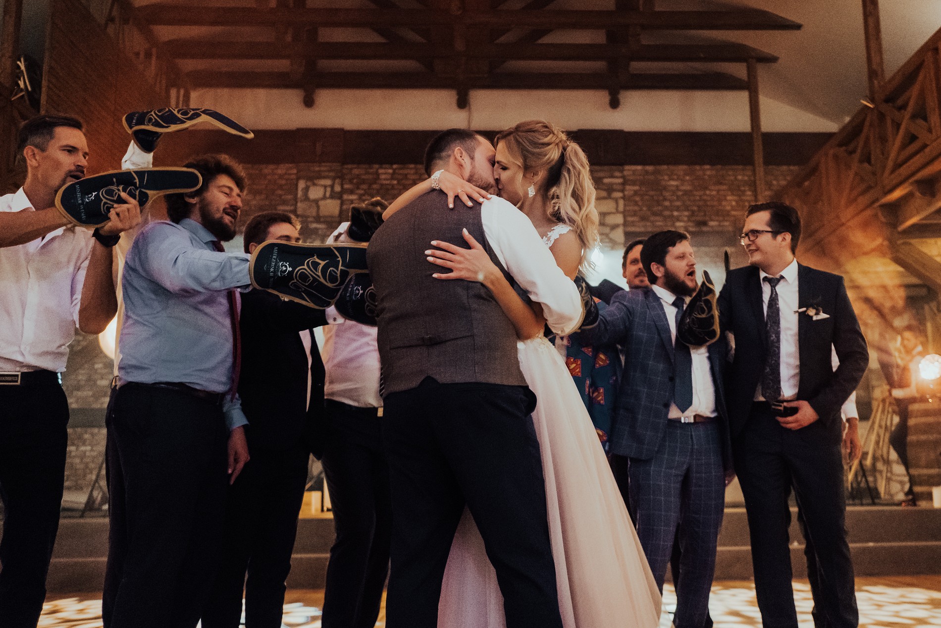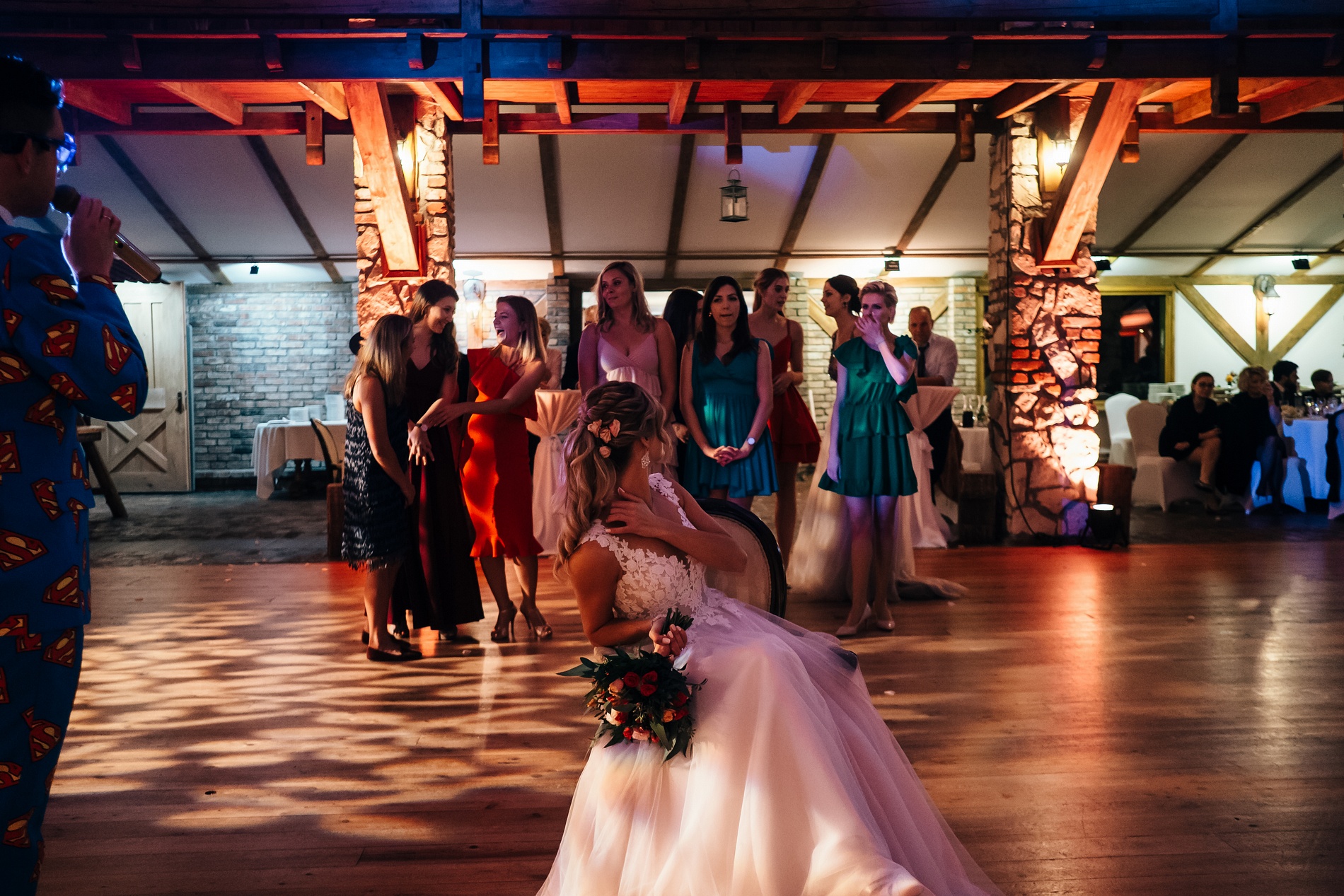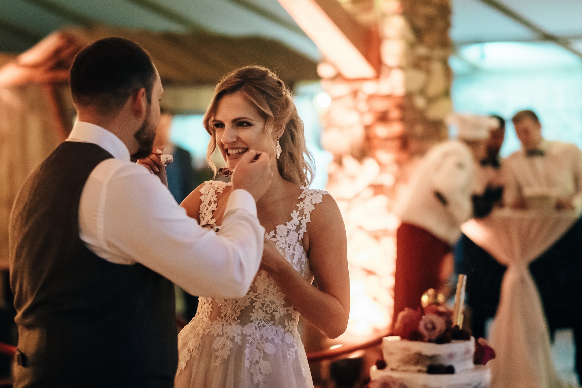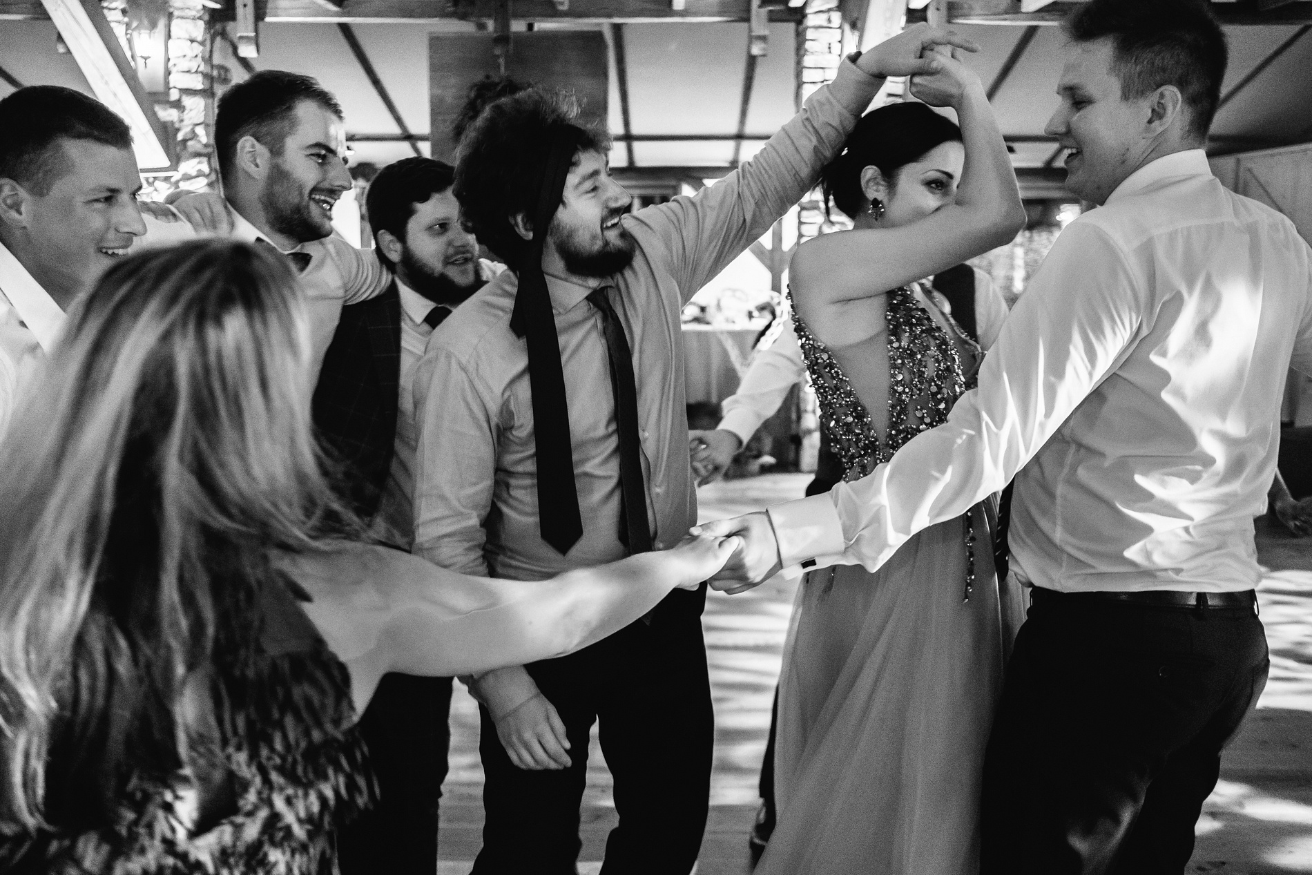 Po złożeniu przysięgi, nadszedł czas na świętowanie z bliskimi. Para Młoda zaprosiła Gości do Dworzyszcza Woli. Wnętrza w rustykalnym stylu, oświetlone świecami, wprowadzały ciepłą, rodzinną atmosferę, a jednocześnie zachwycały swoją subtelną elegancją. Para Młoda dała poznać się bliżej prezentując swoją historię w polaroidach rozwieszonych przy wejściu na salę weselną. Bajkową nutę wprowadził pierwszy taniec w chmurach.