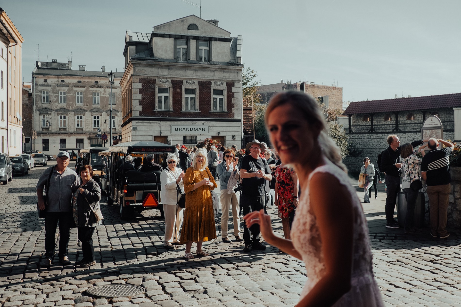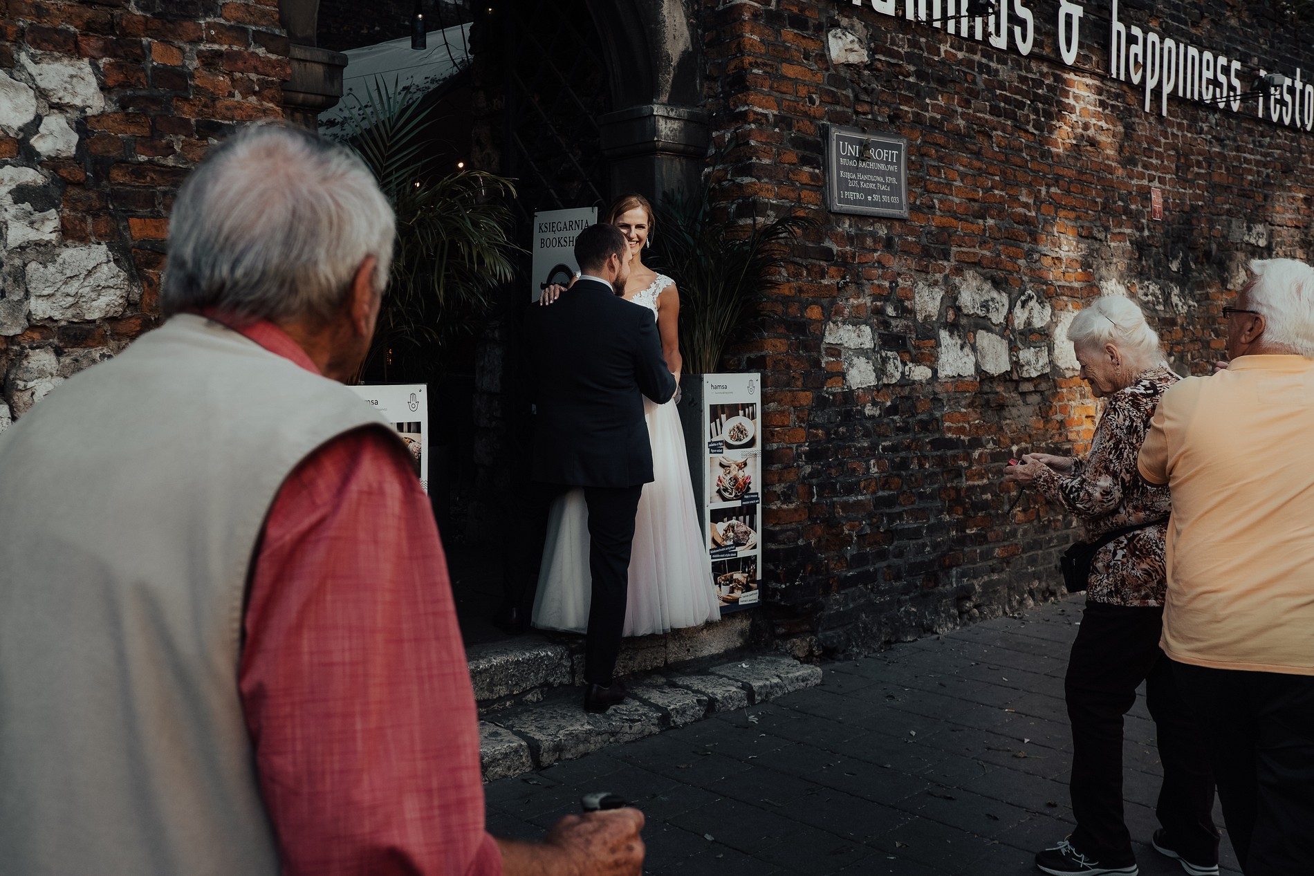 Krakowski Kazimierz to bardzo wdzięczne tło do fotografii ślubnej, a spokojne pola, owiane ciężką mgłą są jego doskonałym uzupełnieniem. Przebijające się przez chmury światło malowało różne nastroje, zarówno na horyzoncie, jak i na twarzach Asi i Mikołaja – a ja byłem szczęśliwy, że mogłem być tam z nimi i to uwiecznić.