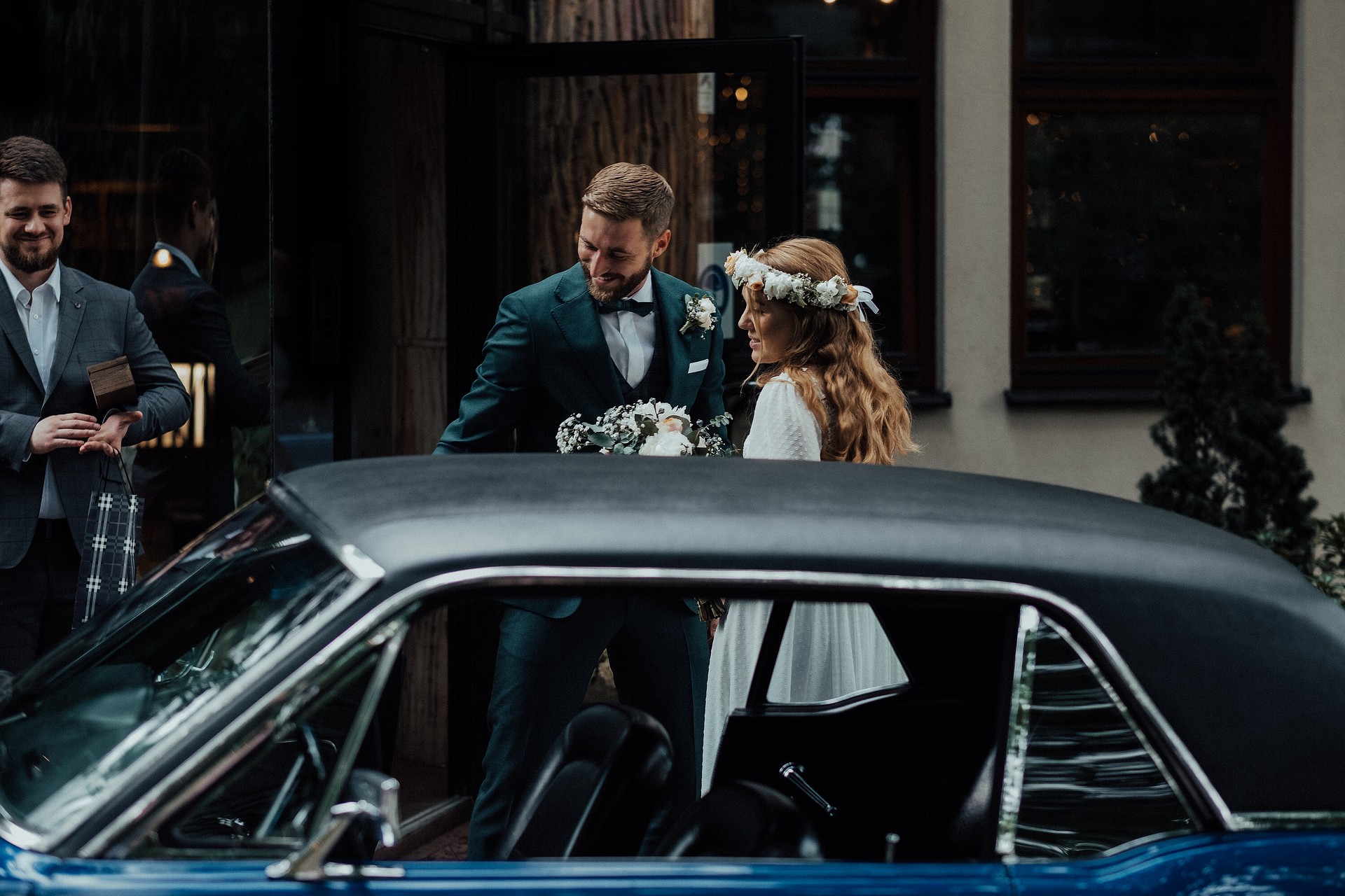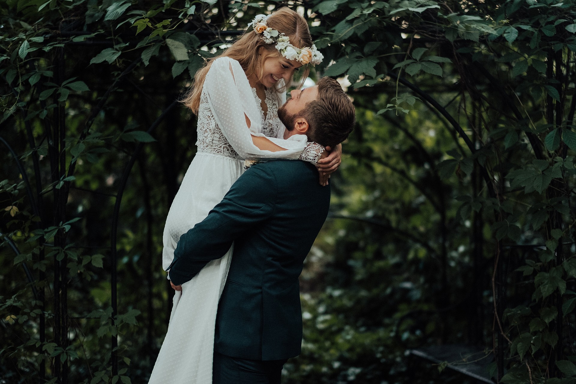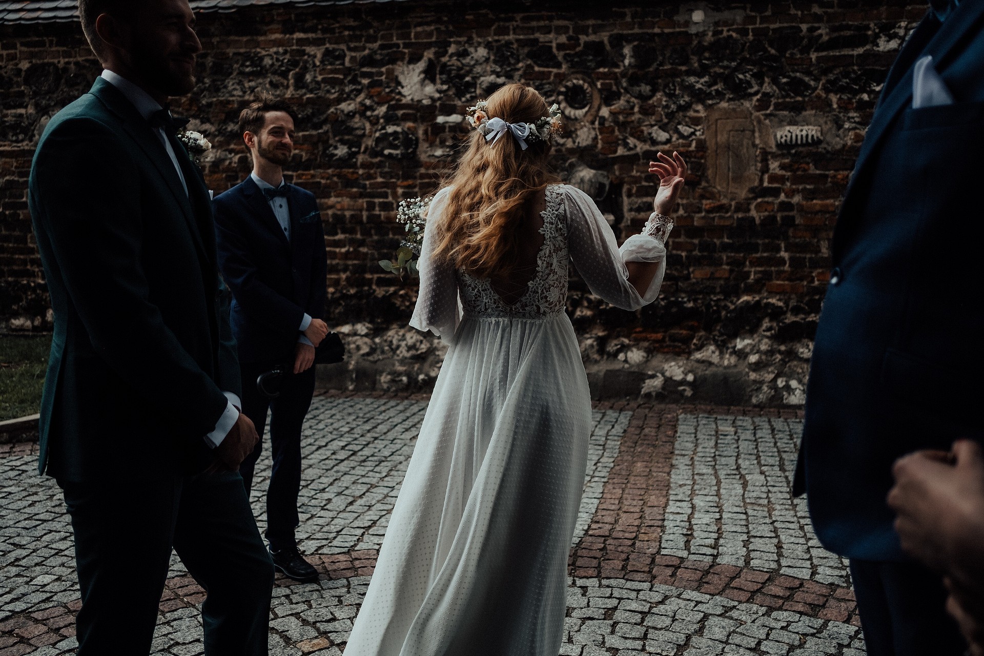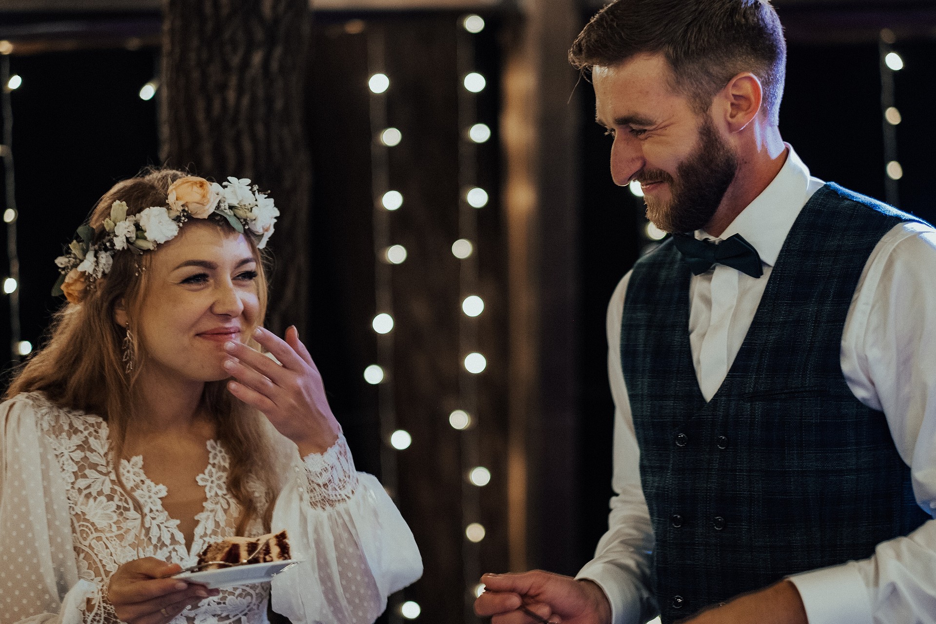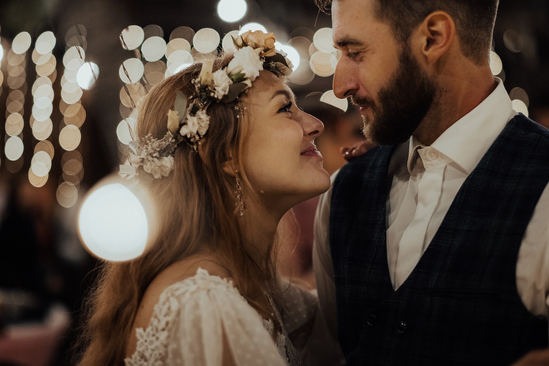 Wesele wypełniły szczere uśmiechy i beztroska radość. Po parkiecie biegały dzieci, dodając lekkości i spontaniczności całej zabawie, a goście z zaangażowaniem towarzyszyli Młodym w tańcach. Wśród gwaru i muzyki znalazła się też chwila tylko dla nich – krótka, kameralna mini sesja fotograficzna, podczas której mogli na moment pobyć sam na sam.