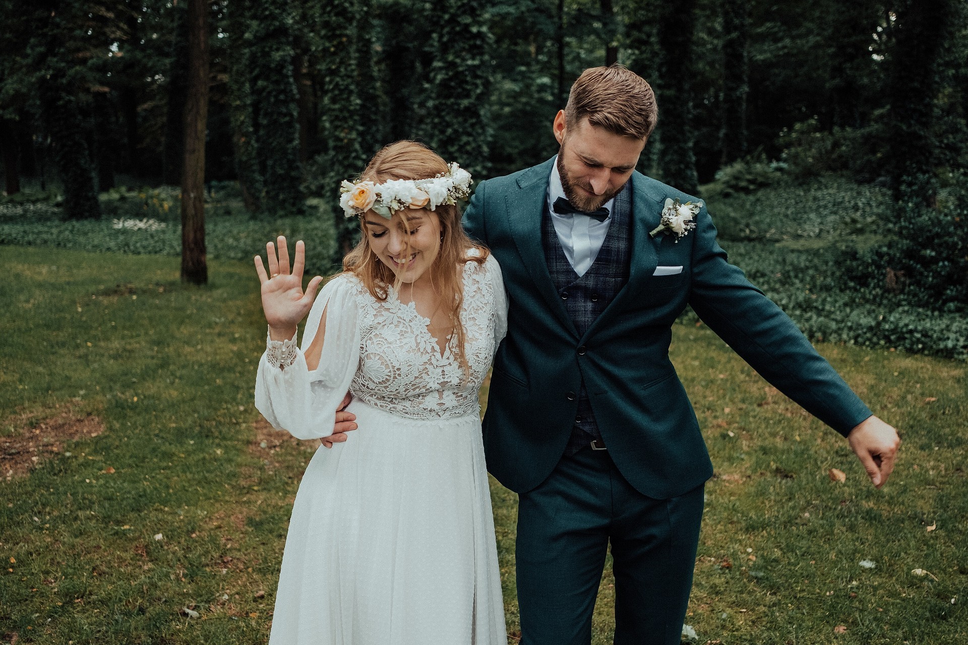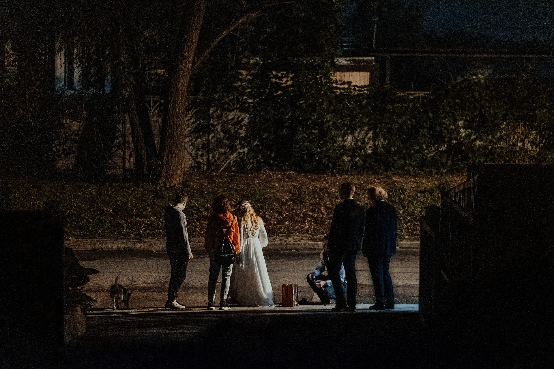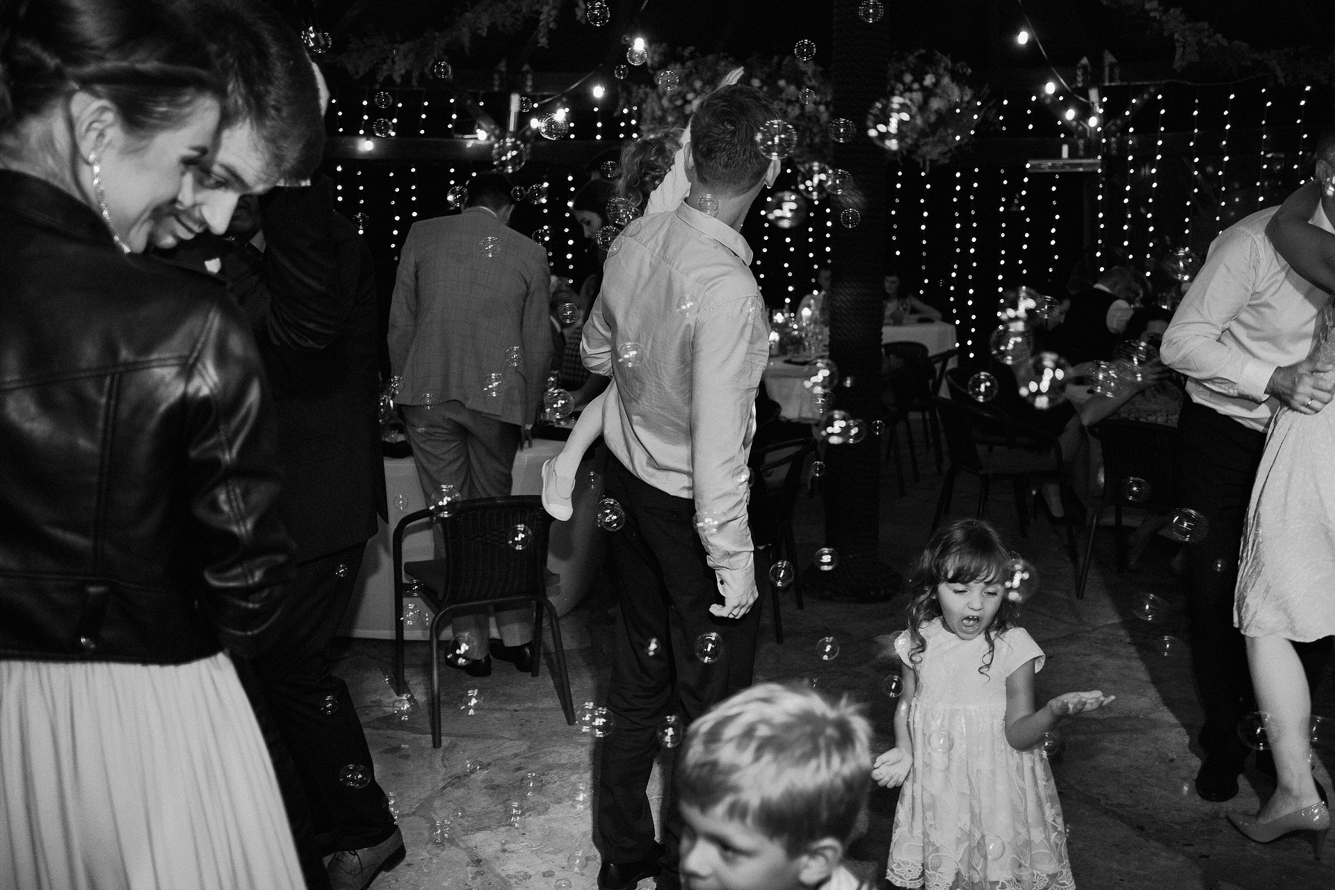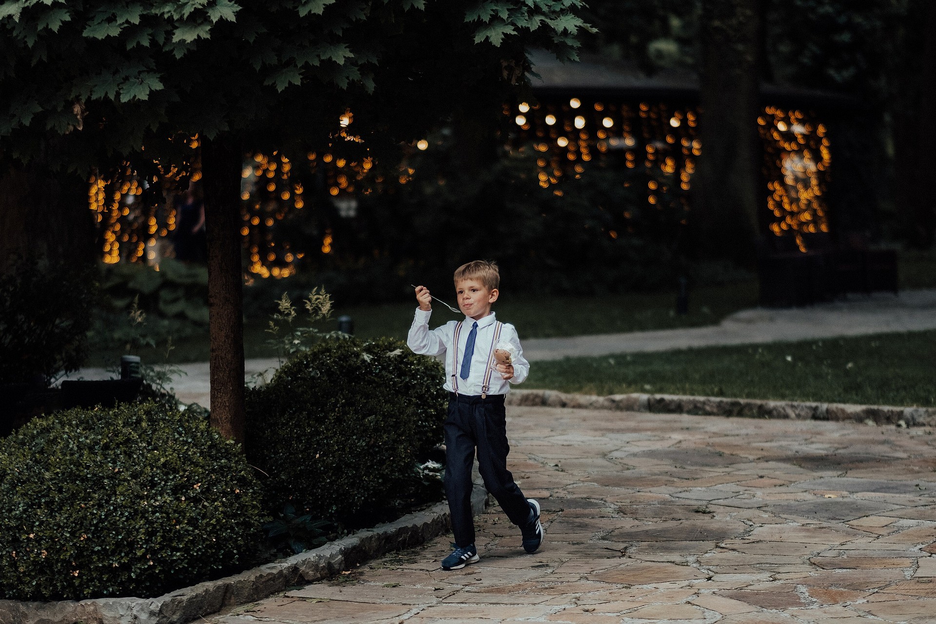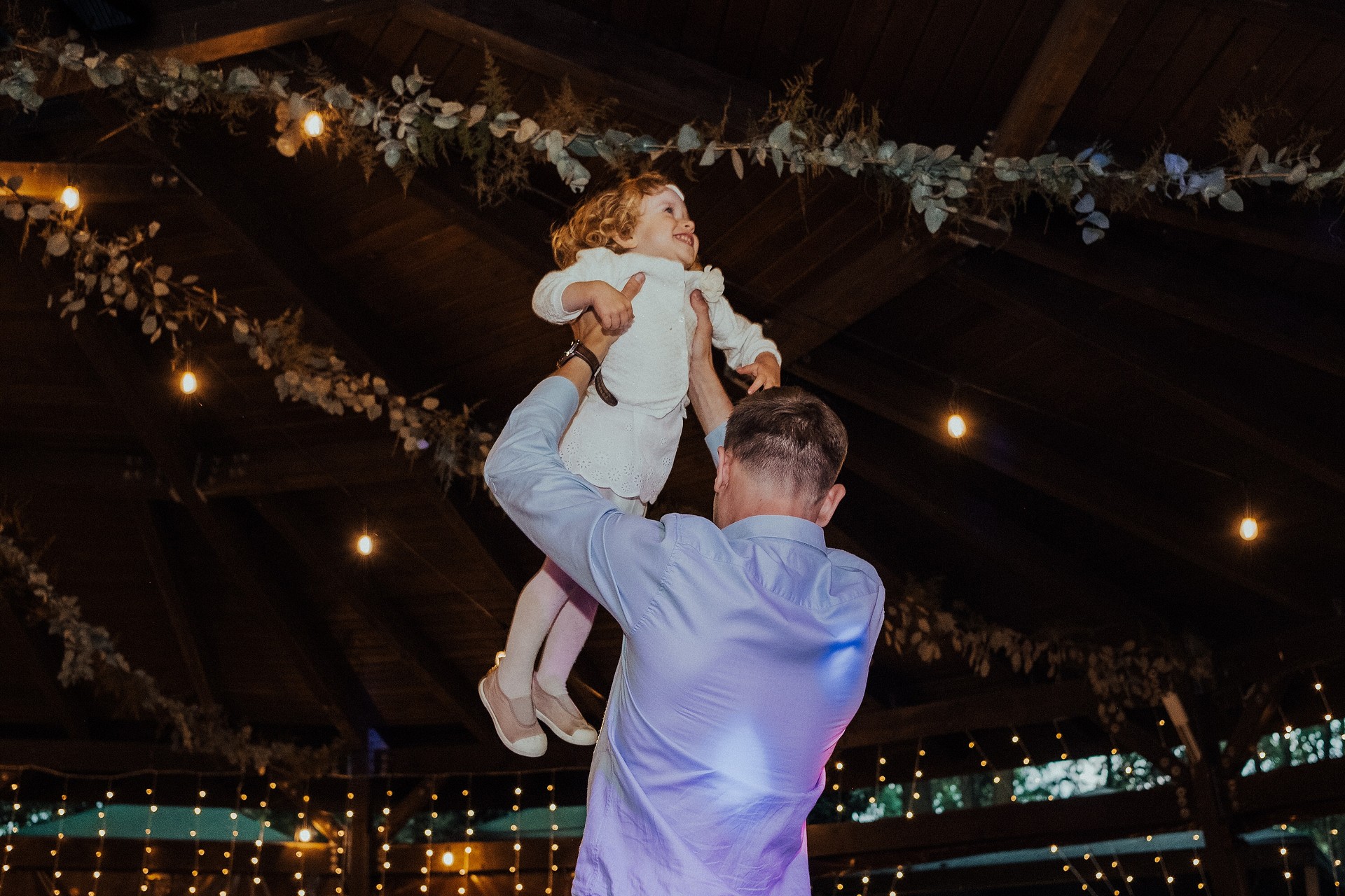 Wesele wypełniły szczere uśmiechy i beztroska radość. Po parkiecie biegały dzieci, dodając lekkości i spontaniczności całej zabawie, a goście z zaangażowaniem towarzyszyli Młodym w tańcach. Wśród gwaru i muzyki znalazła się też chwila tylko dla nich – krótka, kameralna mini sesja fotograficzna, podczas której mogli na moment pobyć sam na sam.