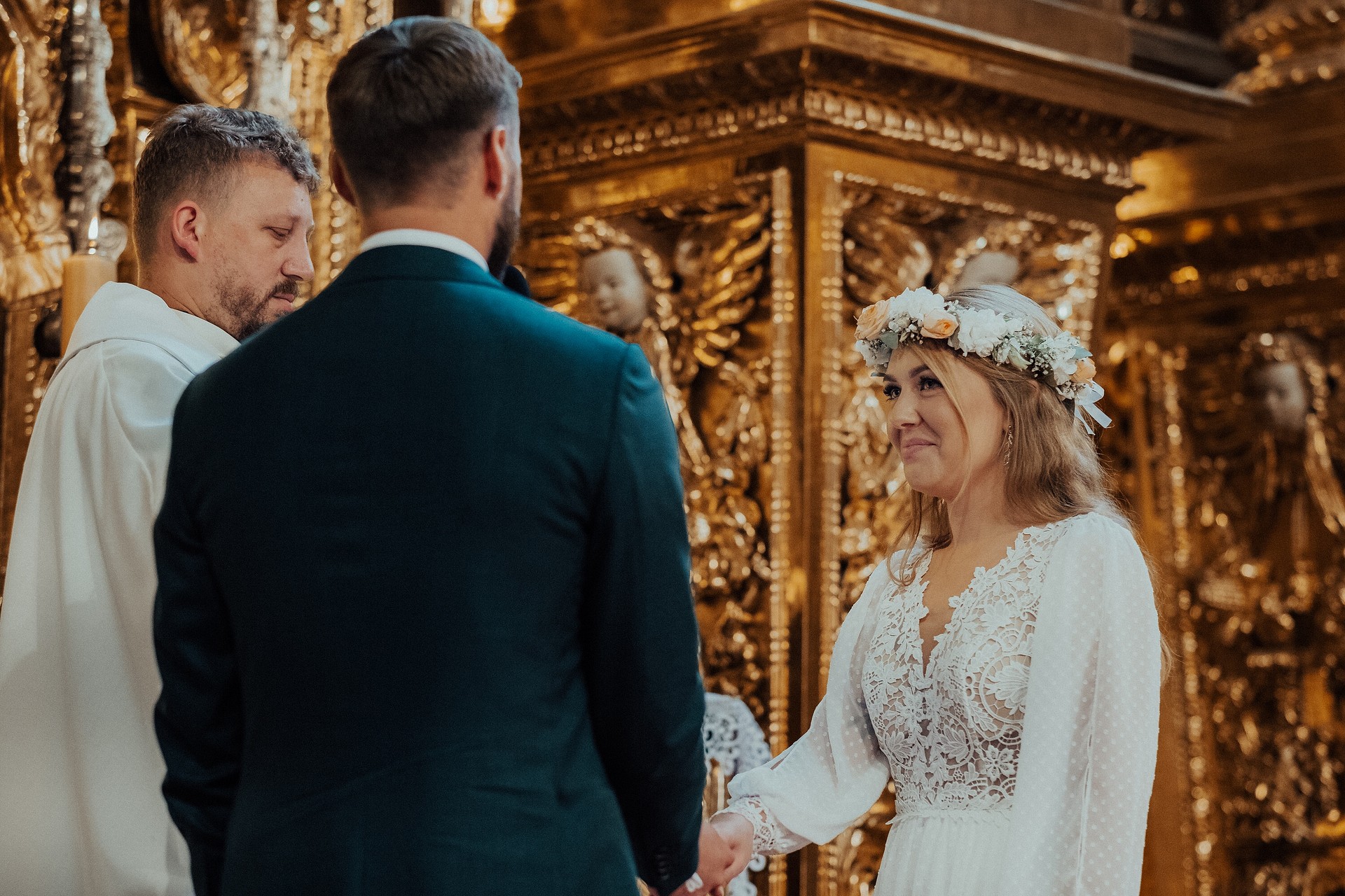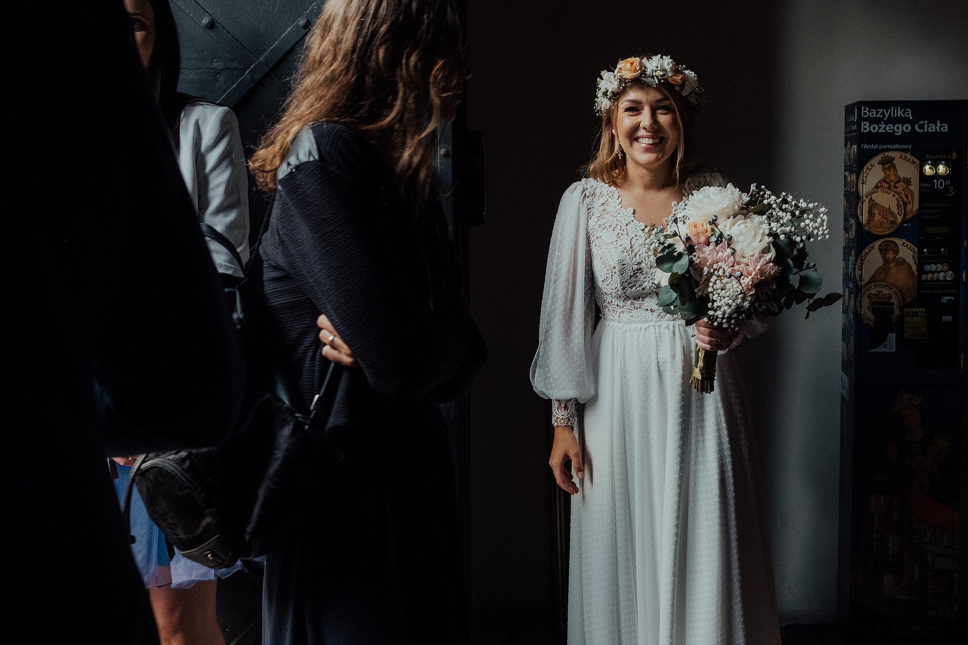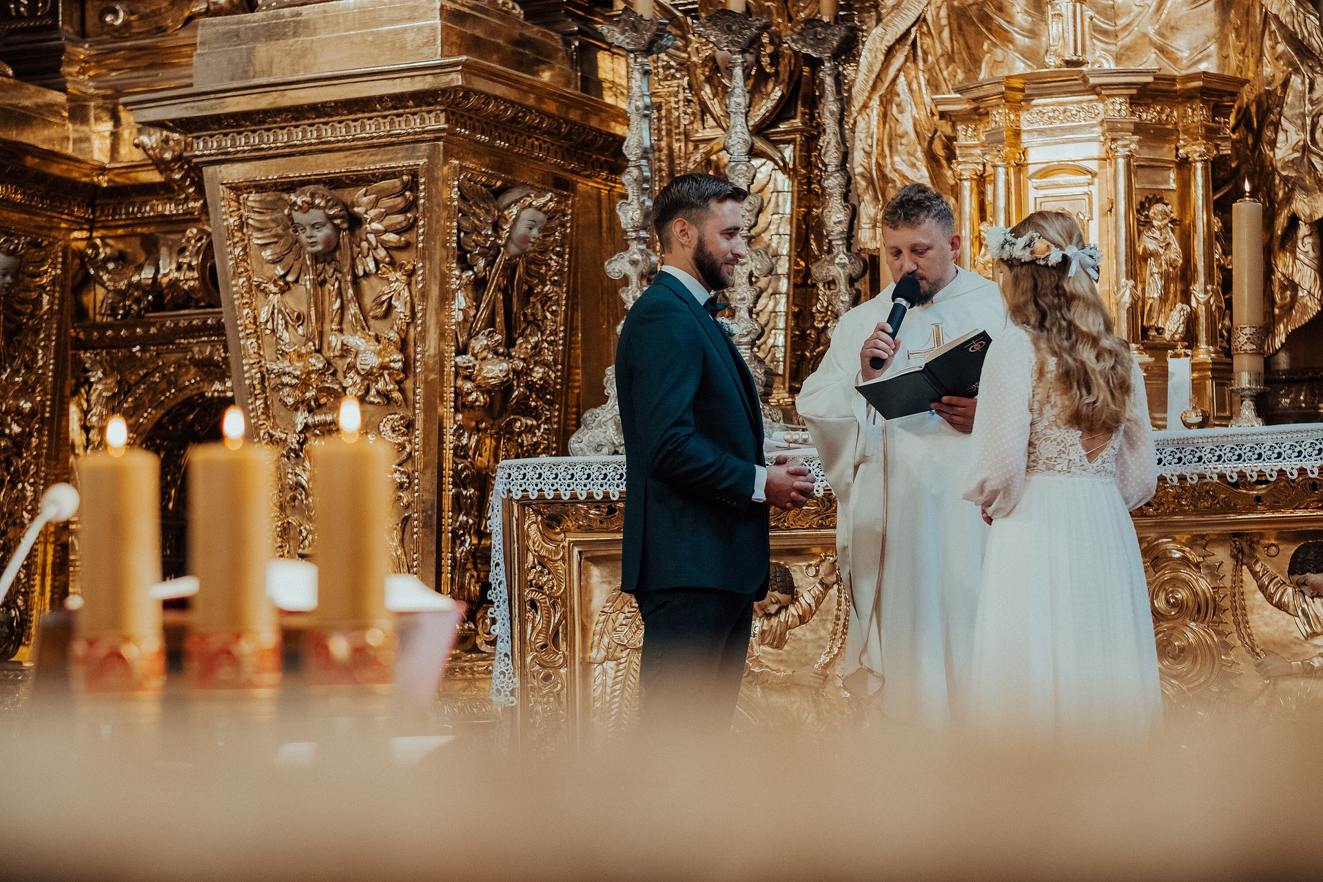 Ślub odbył się w majestatycznej Bazylice Bożego Ciała – miejscu, które zachwyca swoim pięknem i duchową głębią. Emocje były widoczne od pierwszych chwil: spojrzenia, uśmiechy i subtelne drżenie dłoni zdradzały wagę tego wydarzenia.