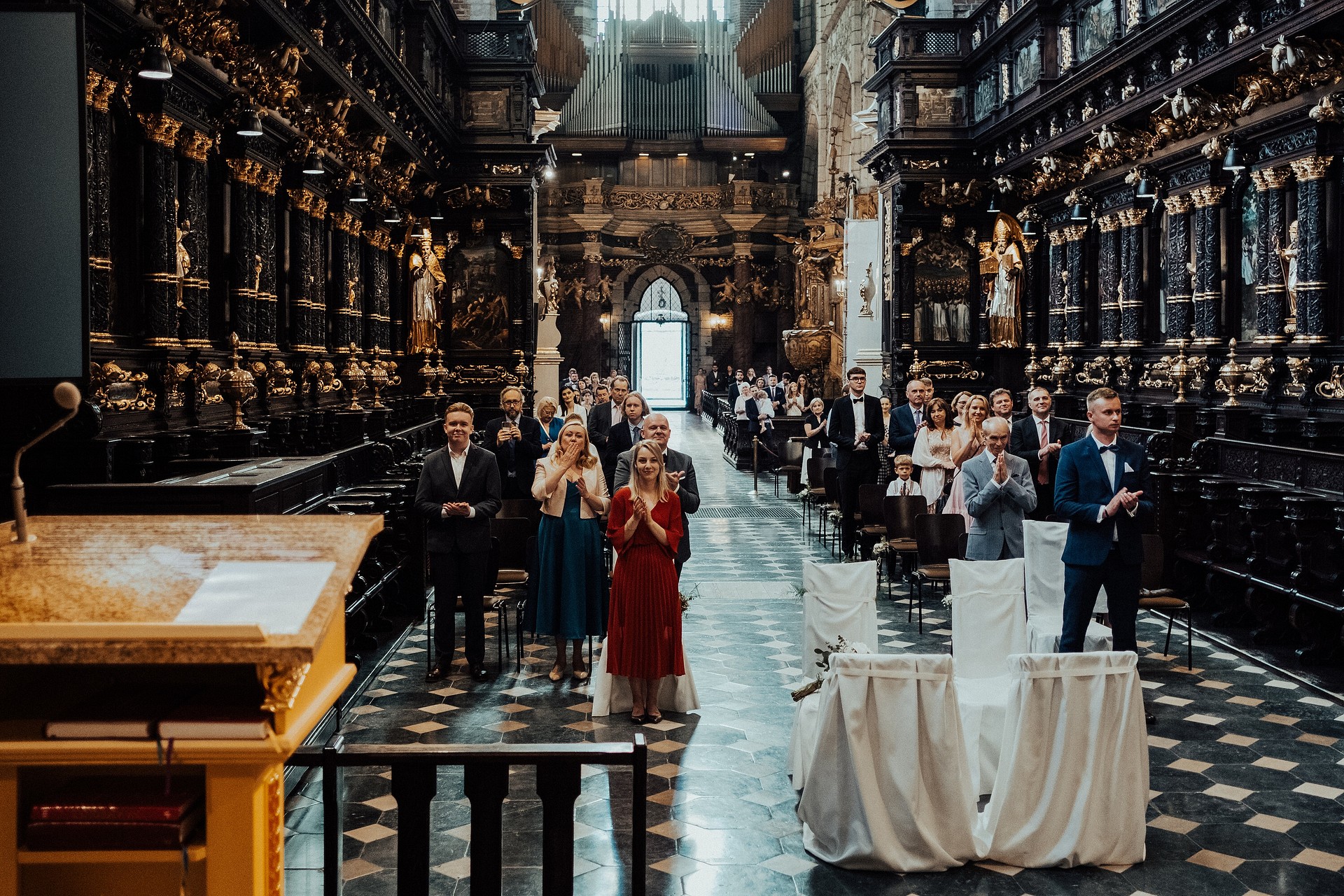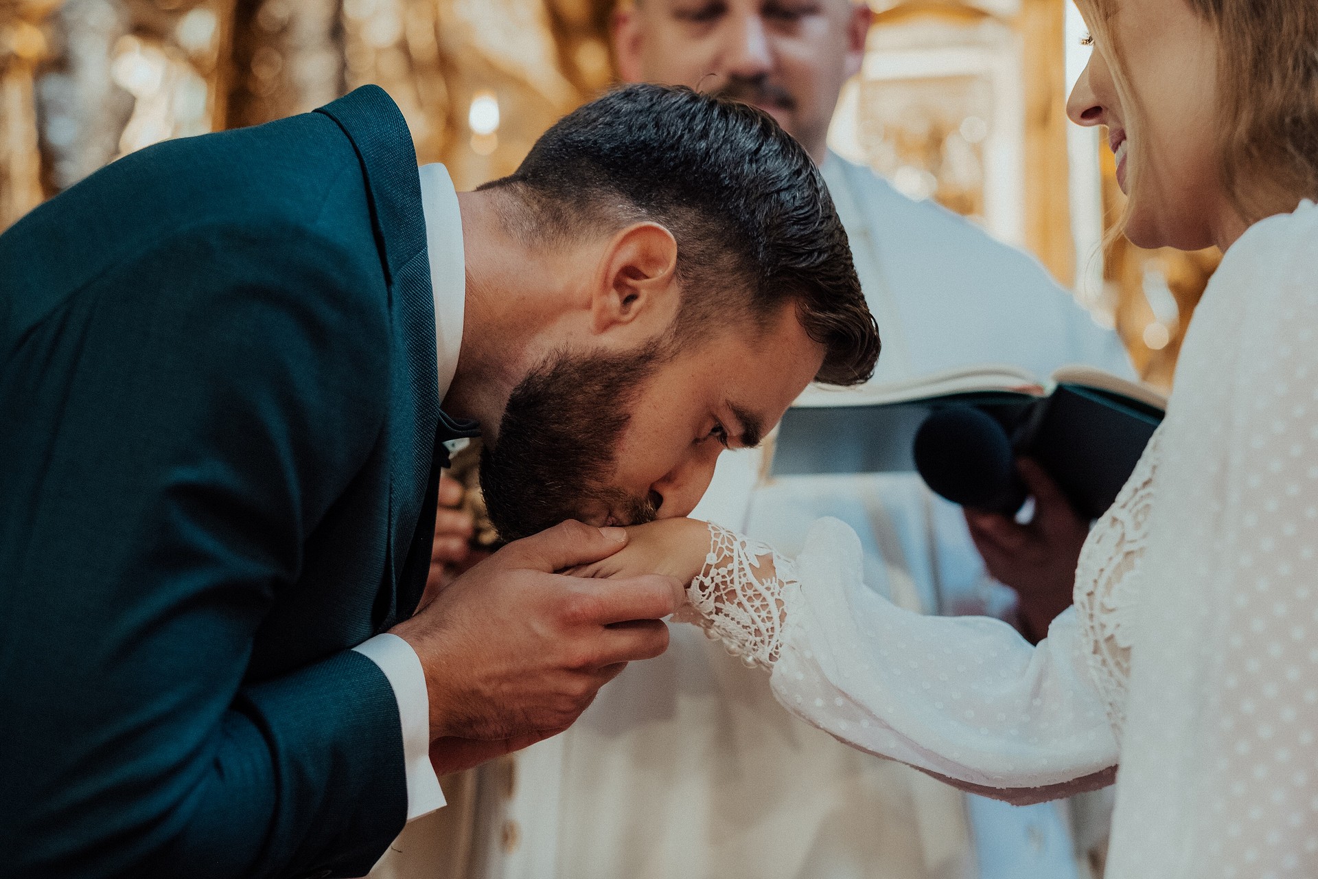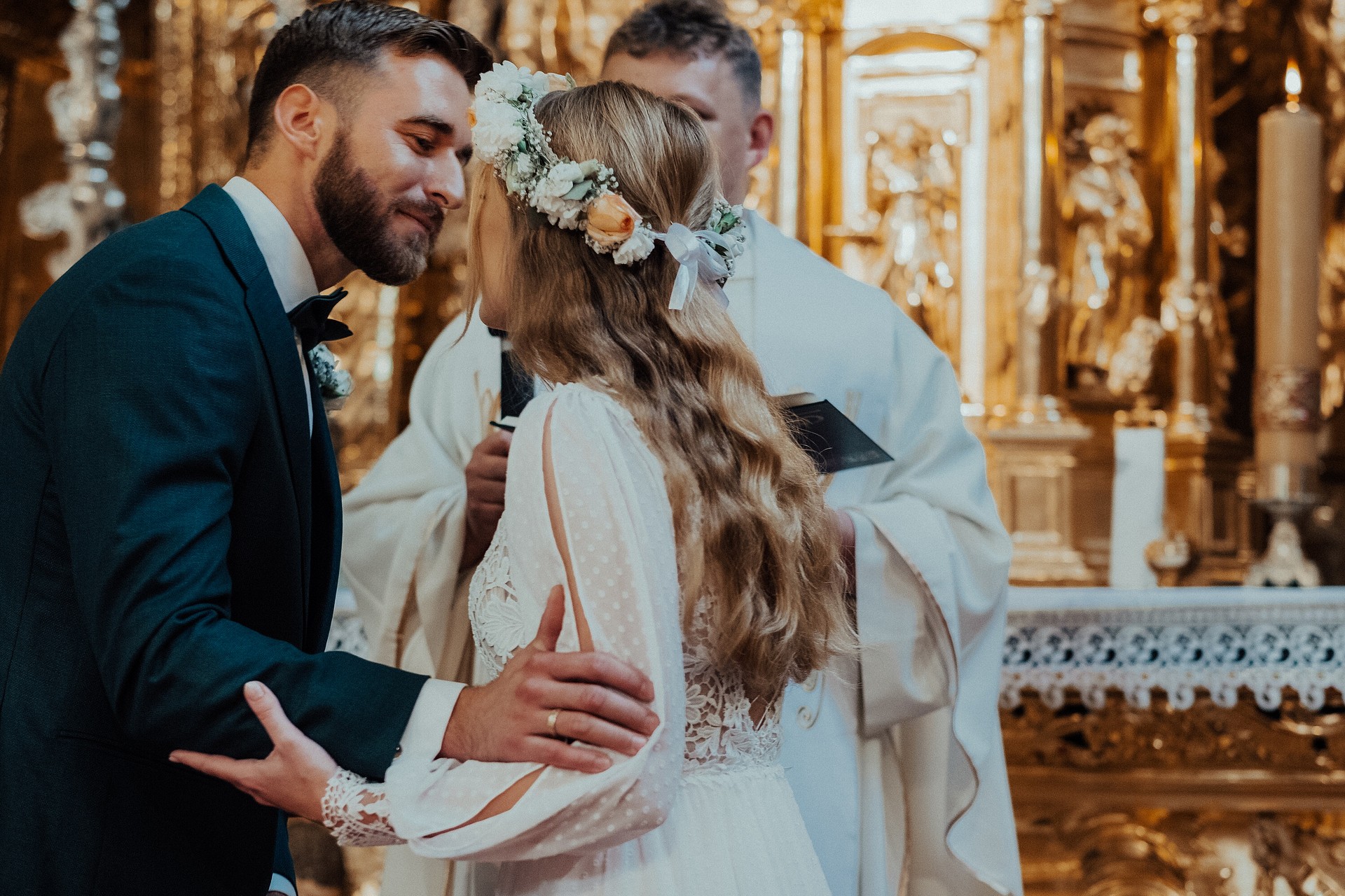 Ślub odbył się w majestatycznej Bazylice Bożego Ciała – miejscu, które zachwyca swoim pięknem i duchową głębią. Emocje były widoczne od pierwszych chwil: spojrzenia, uśmiechy i subtelne drżenie dłoni zdradzały wagę tego wydarzenia.