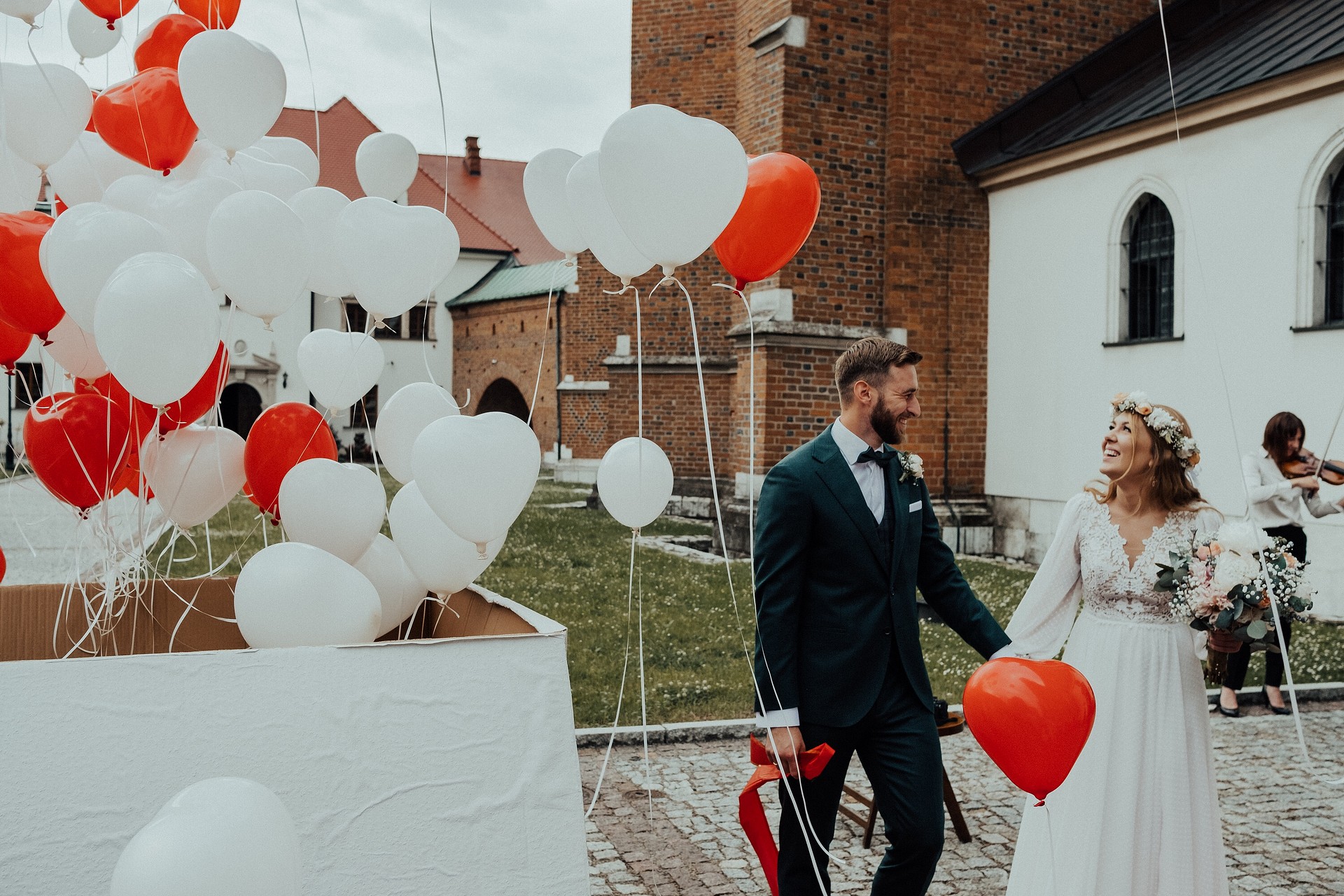 Po zakończeniu ceremonii, przy akompaniamencie instrumentów smyczkowych, Młodzi wypuścili w niebo białe i czerwone balony w kształcie serc. Piękny symbol miłości i nadziei!