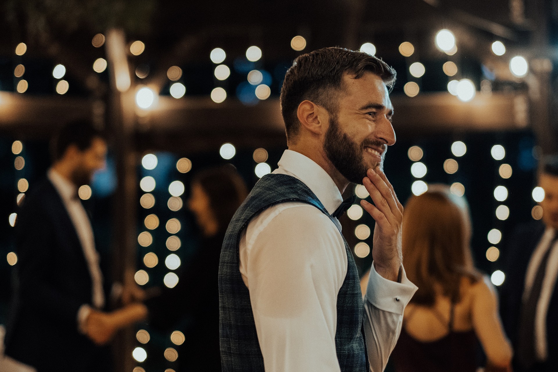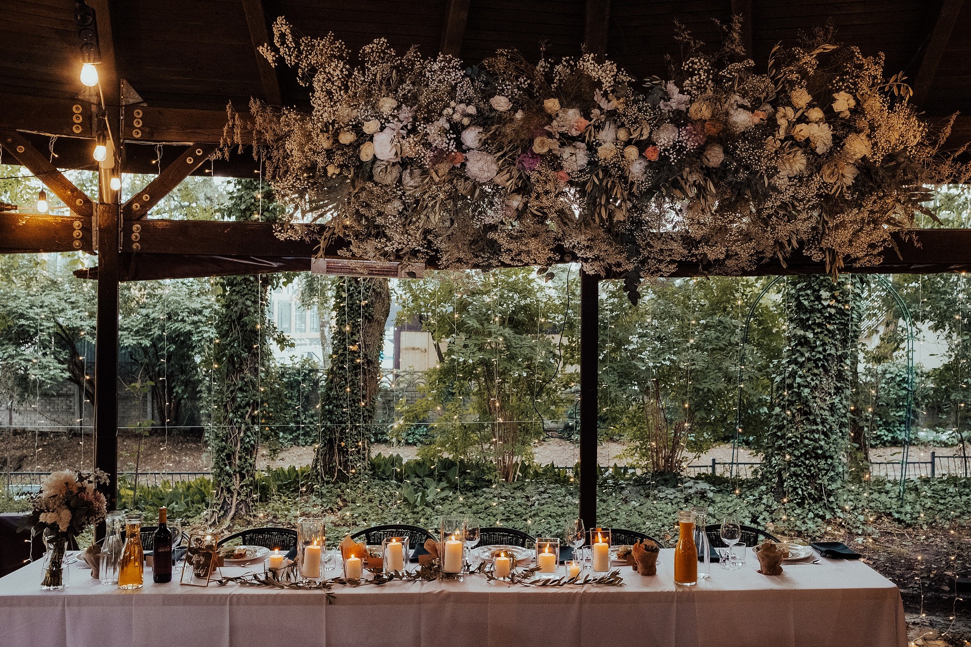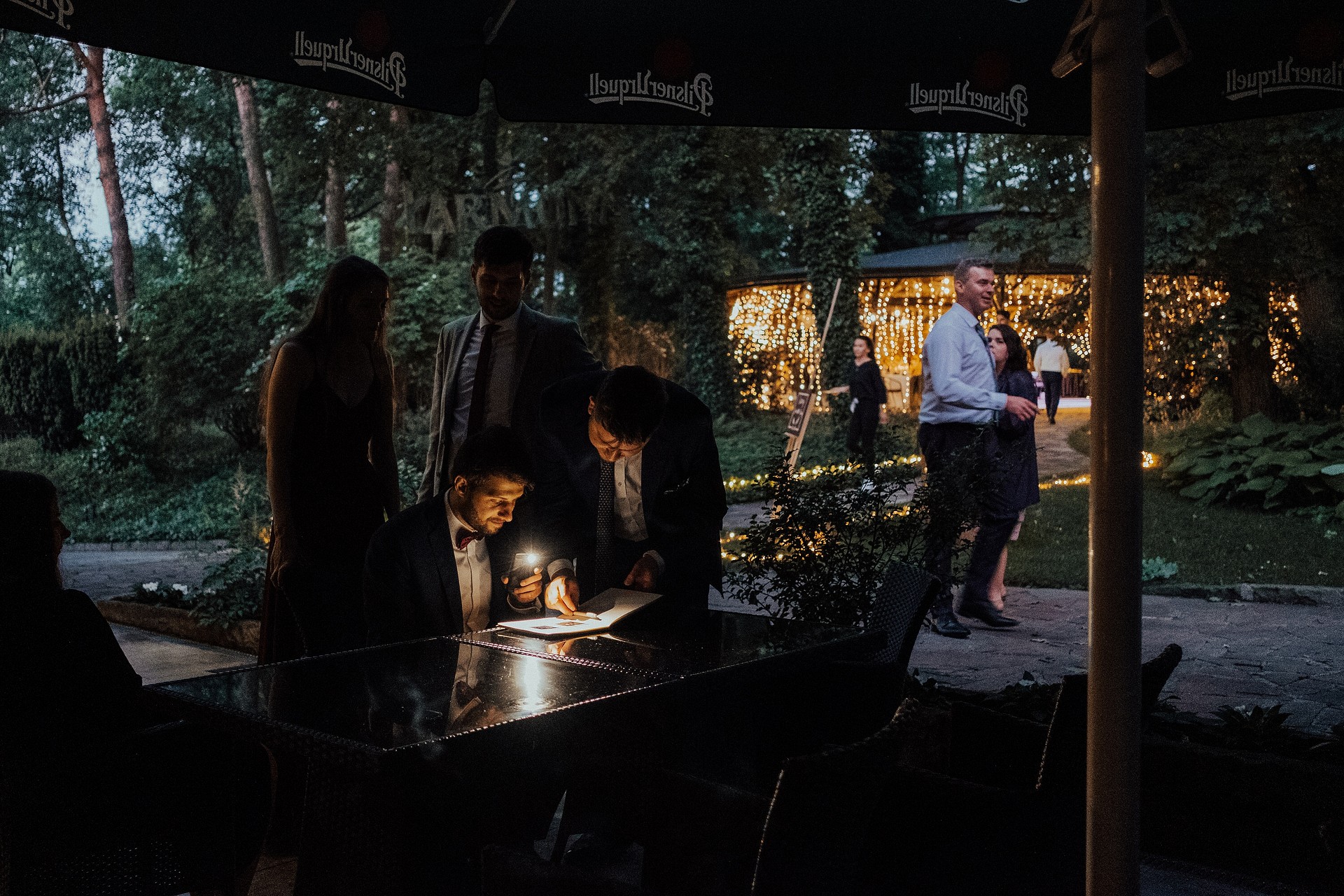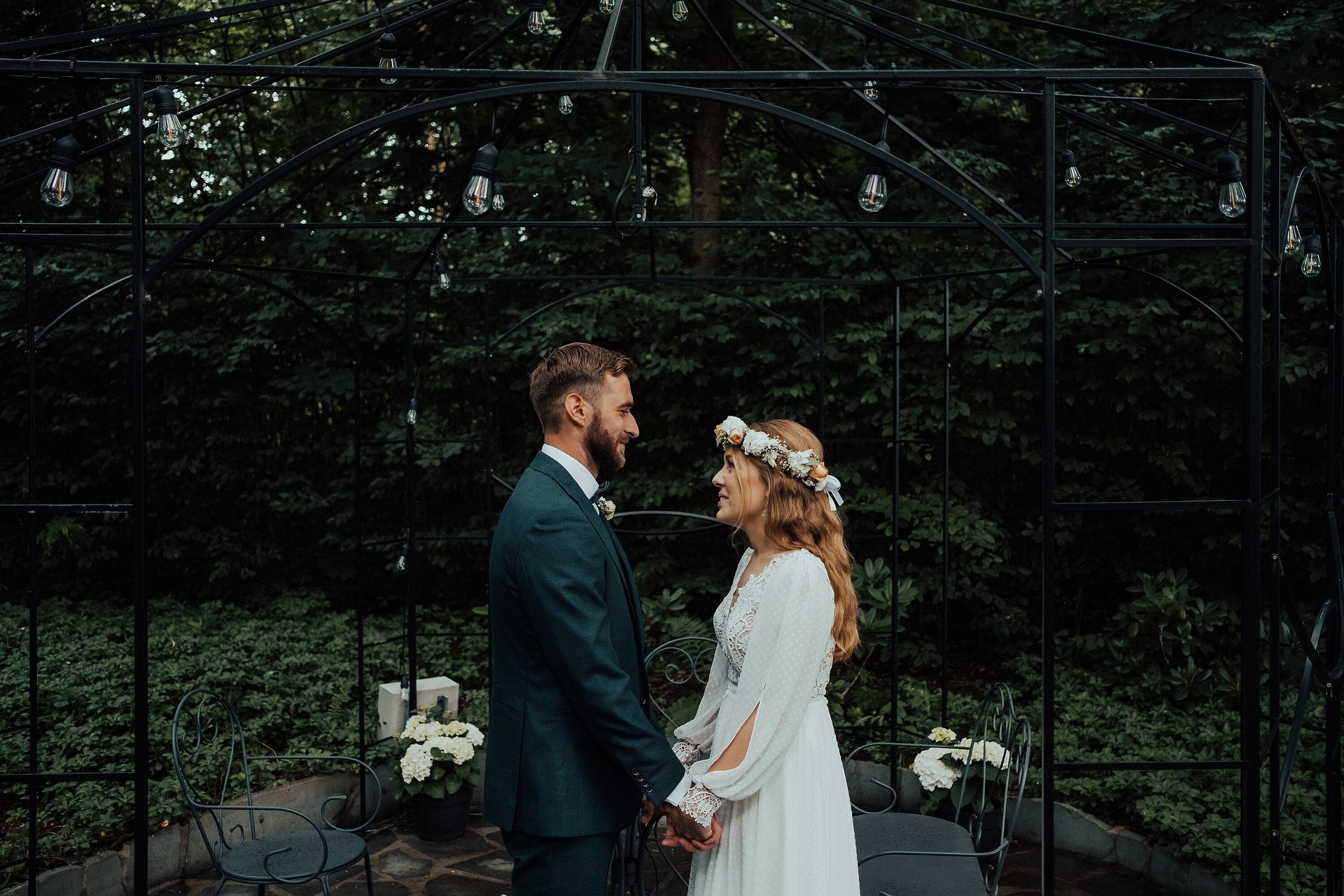 Na przyjęcie weselne Para Młoda zaprosiła swoich gości do Restauracji Magnifica w Krakowie. To miejsce zachwyca otoczeniem – zieleń, natura i elegancka przestrzeń tworzą idealne tło dla weselnych celebracji. Pierwszy taniec odbył się w blasku delikatnych światełek, które nadały tej chwili bajkowego klimatu.