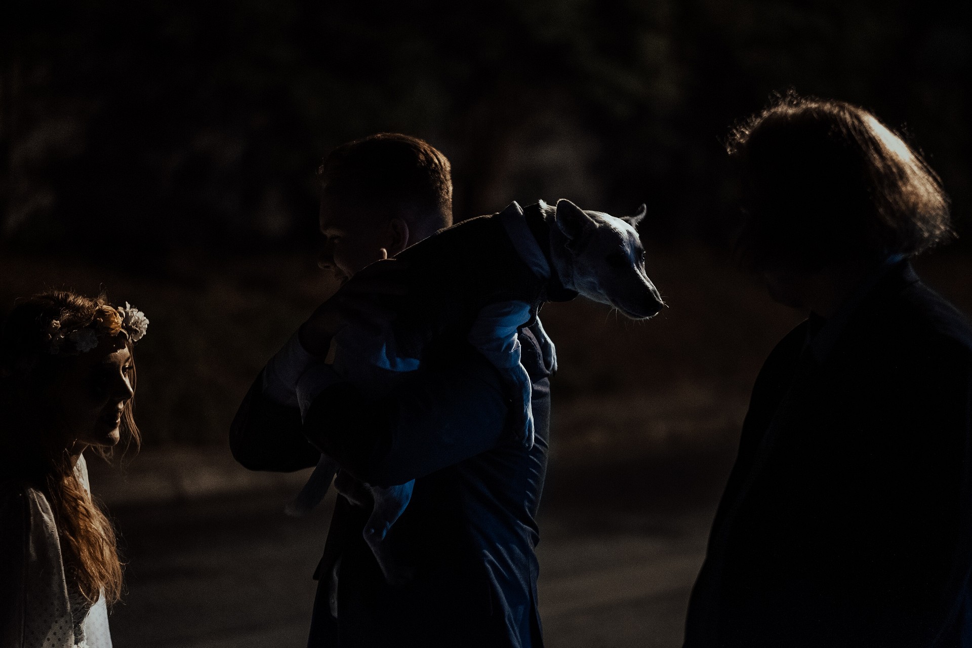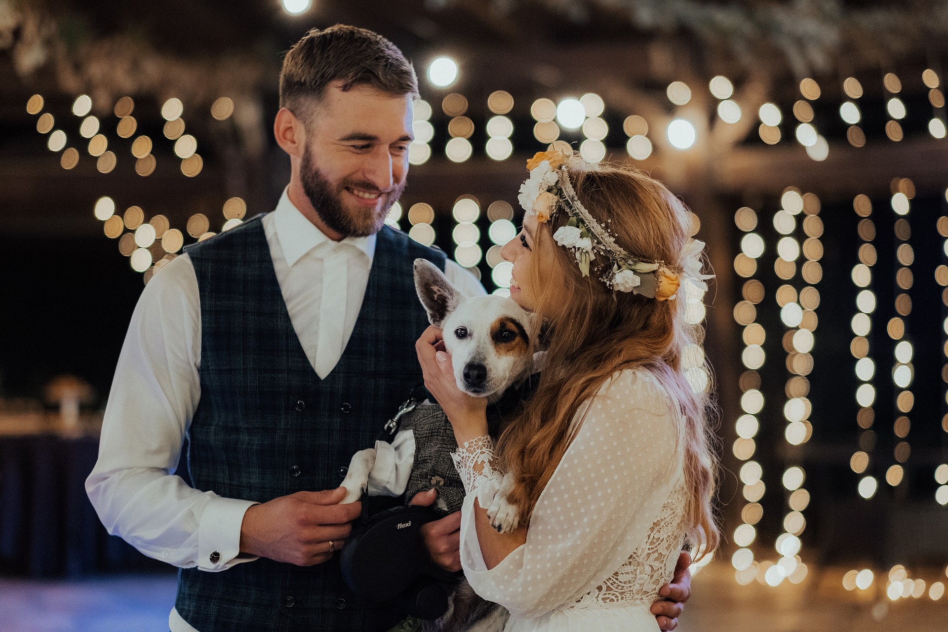 Czym byłaby impreza rodzinna bez czworonożnych towarzyszów zycia? Na koniec wieczoru szczególną uwagę otrzymał pupil Młodych – ubrany w elegancki surdut, dodał przyjęciu jeszcze więcej uroku.